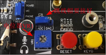 本实验通道2、通道16和通道18用杜邦线接的开发板JP7上的3.3V引脚,通道19接的JP7的GND,通道10接的一个数字电源(数字电源调试输出1.8V),当然也可以将通道10接JP7的GND或者接电位器,通过调节电位器来输出0~3.3V的电压。