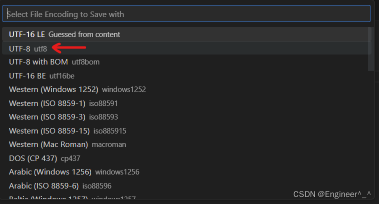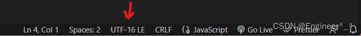 在 Visual Studio Code 的右下角,点击 UTF-16 LE