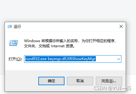 打开cmd或者其他的命令行窗口输入:rundll32.exe keymgr.dll,KRShowKeyMgr