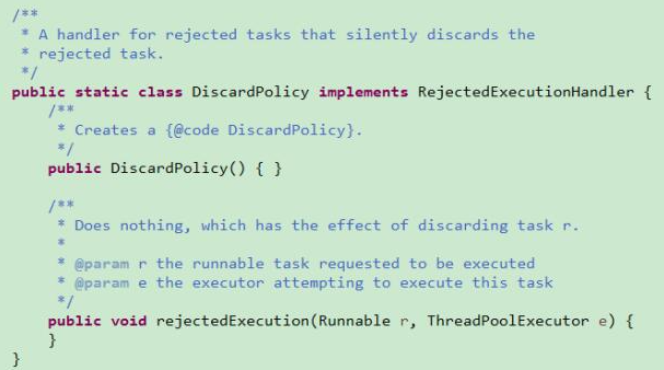 从方法看没做任务操作,即表示不处理新任务,即丢弃。