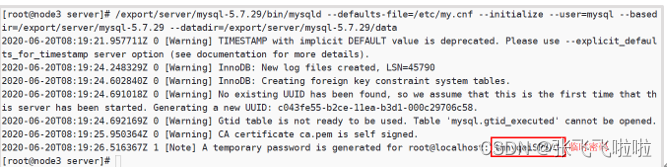 执行该命令之后,会生成一个mysql的临时密码,这个密码后边要使用。