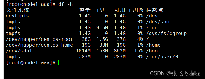 | df -h | disk free 显示磁盘剩余空间 |
