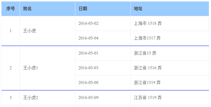 PS:表格合并有各种不同的方法,我上面的仅仅是其中一种,不同的方法添加标识代码的位置都不同。但是万变不离其宗,我的思路是只要给每个合并组中第一个添加标志那就完成了主要步骤,cell-class-name的判断依旧是相同的。所有代码都是为思路逻辑服务的。