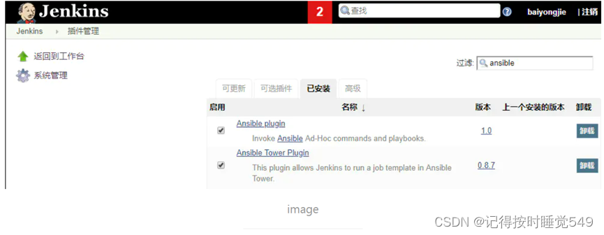 登陆jenkins 选择系统管理->管理插件 安装以下两个插件: Ansible、AnsiColor