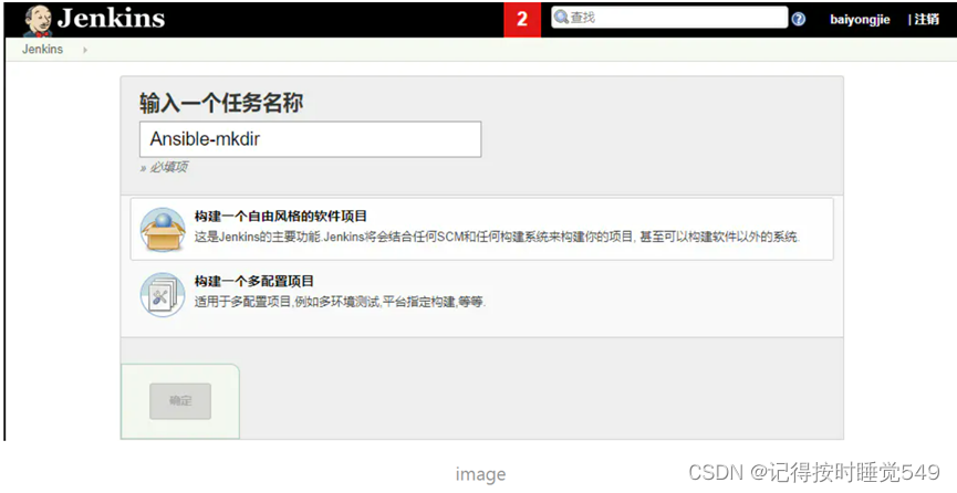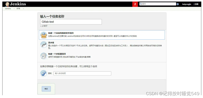 回到首页,新建一个任务,选择构建一个自由风格的任务
