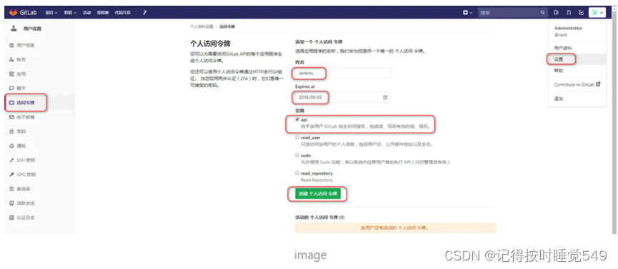 创建访问令牌,设置方法如下图