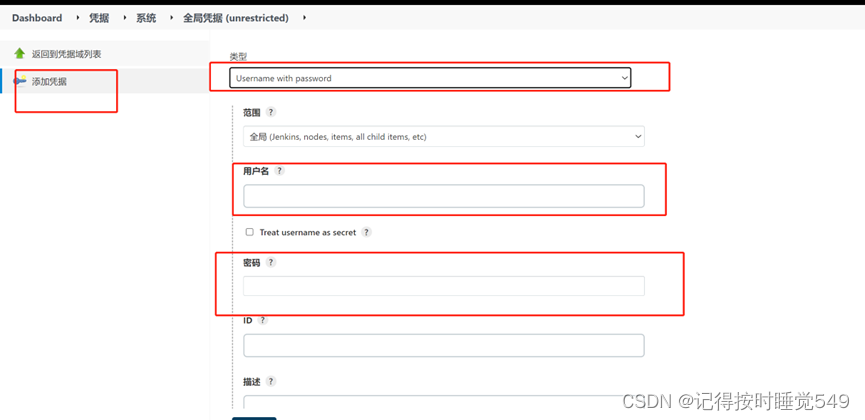 在‘选择jenkins管理里的凭证管理