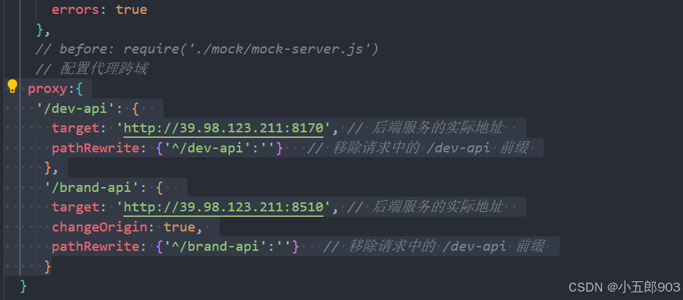 首先:找到文件vue.config.js这个文件 配置代理 第二步找到.env.development文件 第三步:找到src下的utils文件夹下request.js文件复制一份,改成你喜欢的名字 第四步:将复制过来的request.js文件下的baseURL进行修改 第五步:引入:在你需要引入这个端口的文件下引入这个文件
