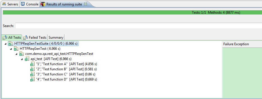 测试方法,由DataProvider提供数据,首先根据ID去取myInputData里的RecordHandler, 由它和template 去生成request, 然后执行request 返回response,这些工作都是由HTTPReqGen.java这个类完成的,借助com.jayway.restassured, 返回的response是一个JSON体,通过org.skyscreamer.jsonassert.JSONCompare 与Baseline中事先填好的期望结果(同样也是JSON格式)进行比较, 根据结果是Pass还是Fail, 都会相应的往Excel里的相应Sheet写结果。