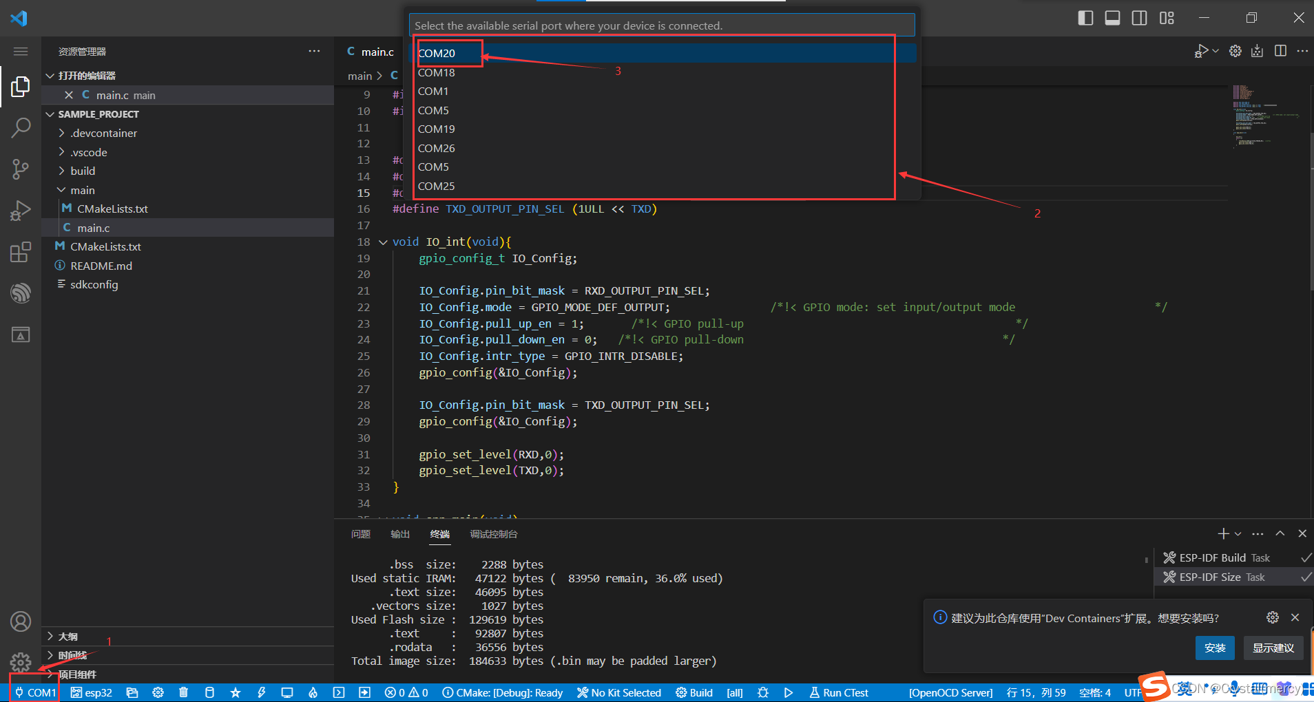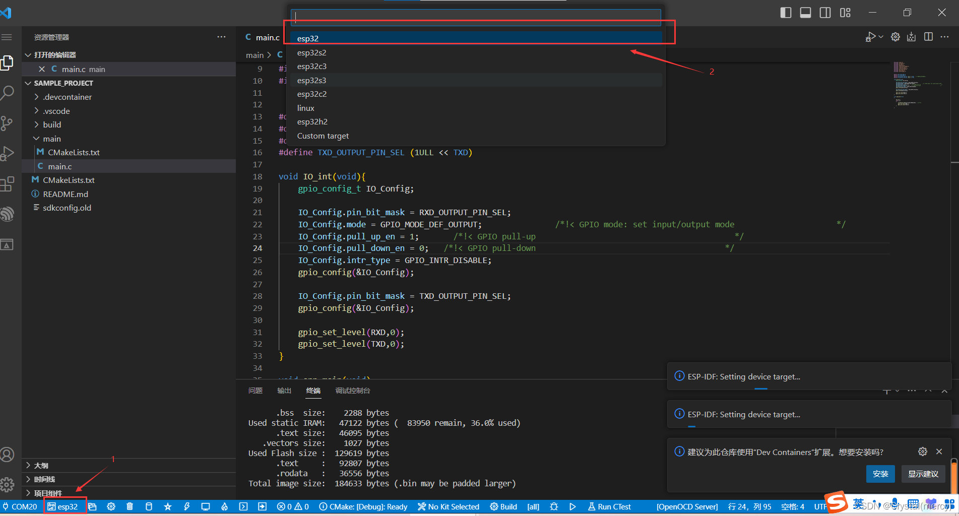 文章介绍了如何在VSCode中搭建ESP32的开发环境,并引导读者了解和使用ESP32的GPIOAPI,包括引脚配置、高低电平设置和获取等功能。同时,提供了ESP32开发板的官方资源下载链接和GPIO配置结构体的详细说明。
