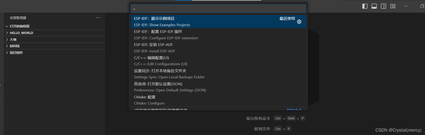 打开VScode,Ctrl+Shift+P,在命令框中输入show examples.