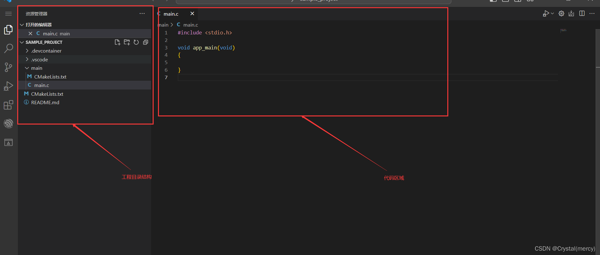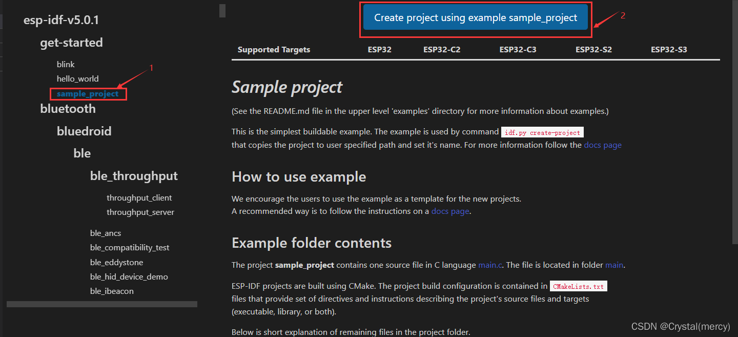 选择sample project->Create project using example sample_project,选择工程文件夹。