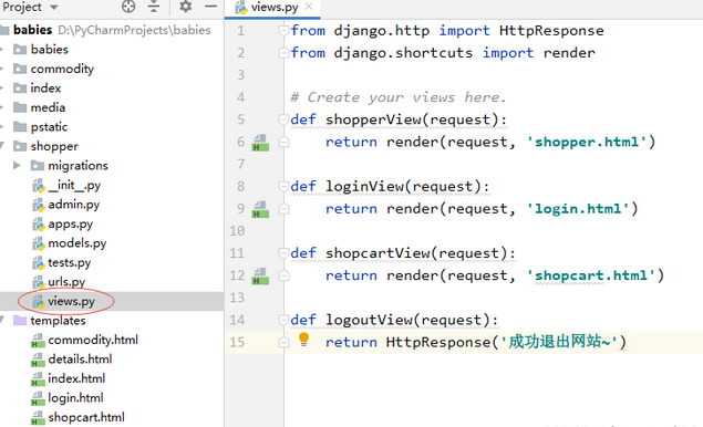 babies环境开发 目录一、创建项目babies导入文件media、pstatic和templates。二、新建一个app(index)三、创建app(commodity)1.命令:python manage.py startapp commodity四、创建app(shopper)1.命令:python manage.py startapp shopper五、创建完的目录结构图六、项目配置文件 (settings.py)七、配置数据库1.创建一个数据库babies2.命令:p.