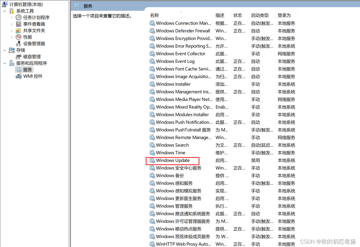 在里面找到,Windows Update手动改成禁用就可以了。