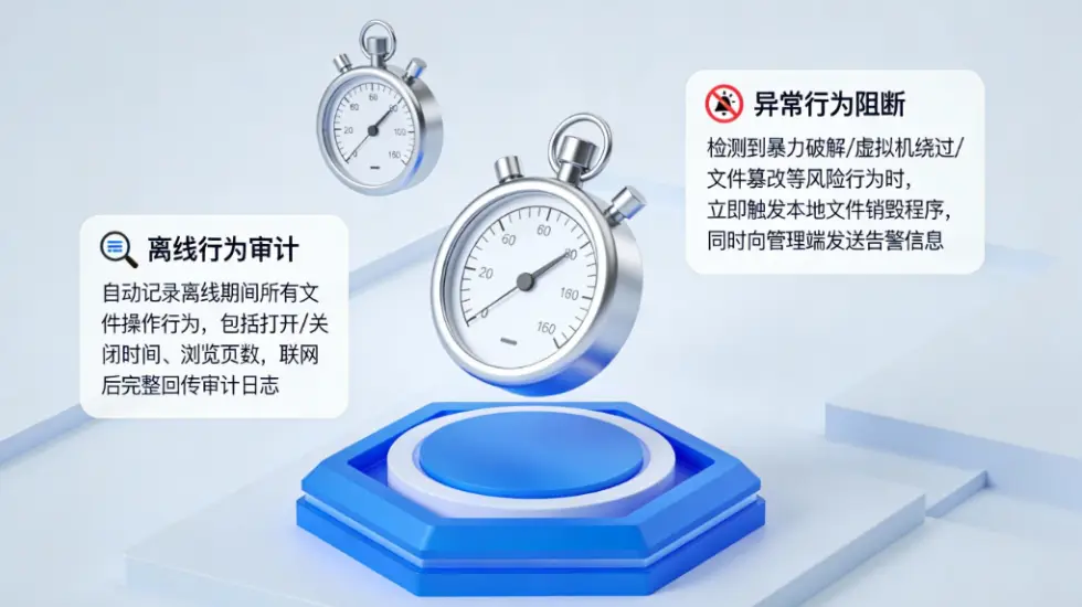 针对外出办公、无网络场景,提供离线授权功能。管理员可预设离线使用时长与权限范围,员工离线状态下仍能正常访问加密文件,既保障移动办公需求,又避免离线状态下的数据泄露。