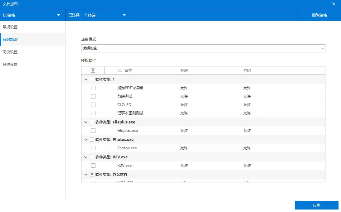 支持管理员在后台统一配置加密规则,可按部门、文件类型精准划分权限。加密策略实时同步至终端设备,无需逐台操作,大幅降低运维成本,同时支持策略修改回溯,确保加密规则可管控、可追溯。