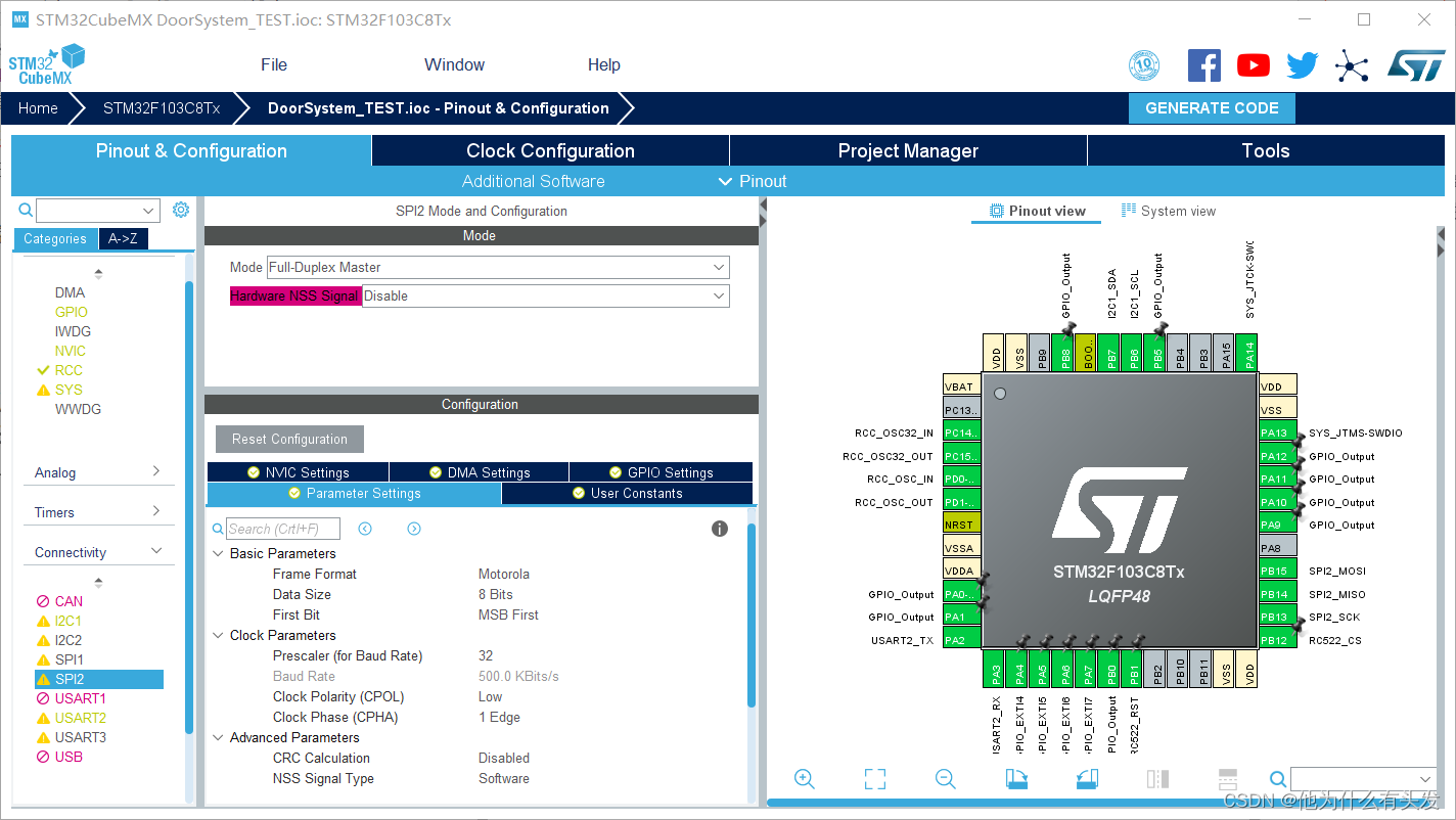 STM32CubeMax的配置就到此结束,最后只需要点击右上角GENERATE CODE生成代码即可。