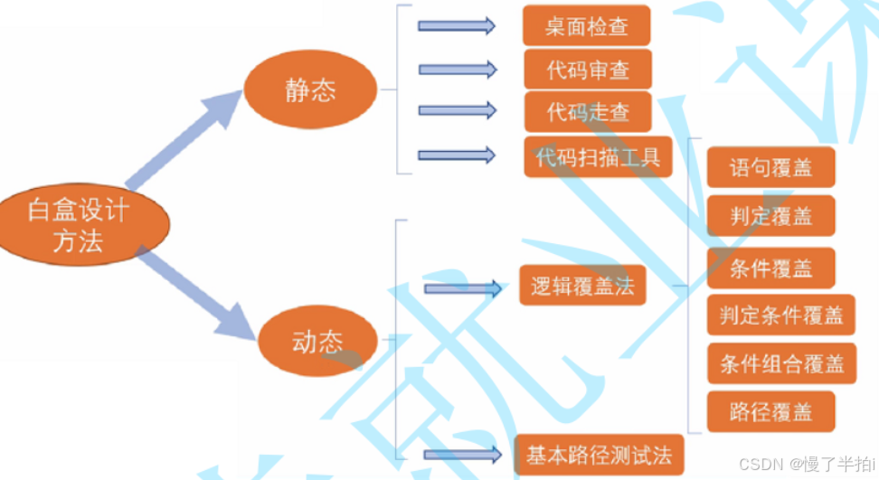 不以测试数据的执⾏⽽是对测试对象的分析过程,仅通过分析或检查源程序的设计、内部结构、逻