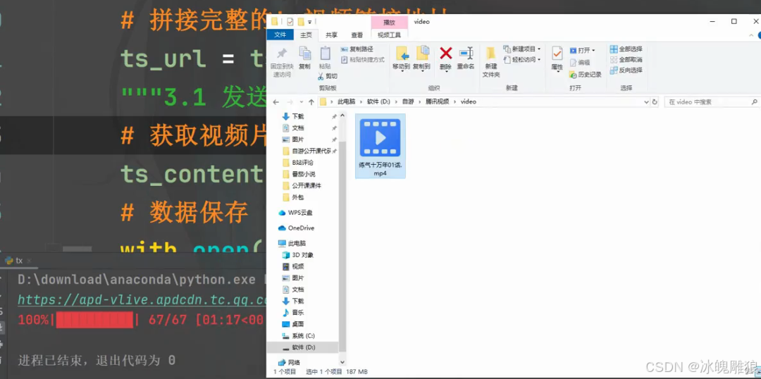 保存数据: 把所有片段内容进行保存并且合并成一个完整的视频内容
