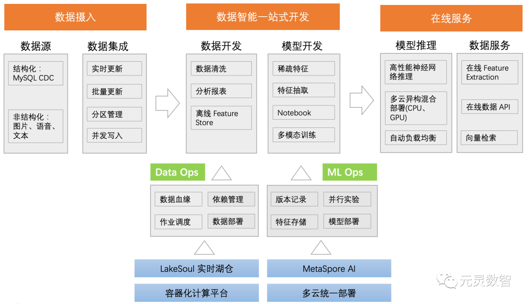 之前数元灵发布了流批一体表存储开源框架 LakeSoul,和一站式机器学习开源平台 MetaSpore,详见我们之前的公众号文章揭秘!新一代一站式机器学习平台MetaSpore的设计理念、重磅!开源湖仓平台 LakeSoul 设计理念详解 。通过使用 LakeSoul 和 MetaSpore,可以快速开发实时的数据分析和完整的机器学习在离线链路,参考重磅!基于新一代MetaSpore平台快速搭建工业级推荐系统。