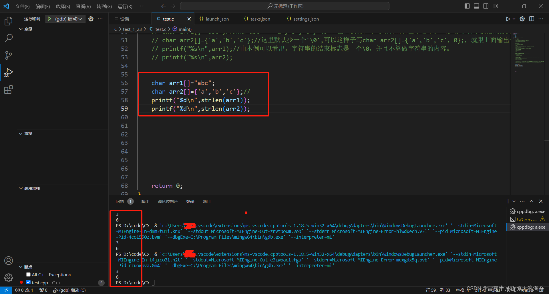 VScode中运行数组为什么会是这个结果,错误原因是什么? 为什么会出现这个错误呢,arr2输出的长度不应该是随机的吗?为什么在vscode里却是固定的6,并且打印printf("%s",arr2)的时候也是输出abcabc,跟视频上讲的不一样,请问是什么原因导致的呢?
