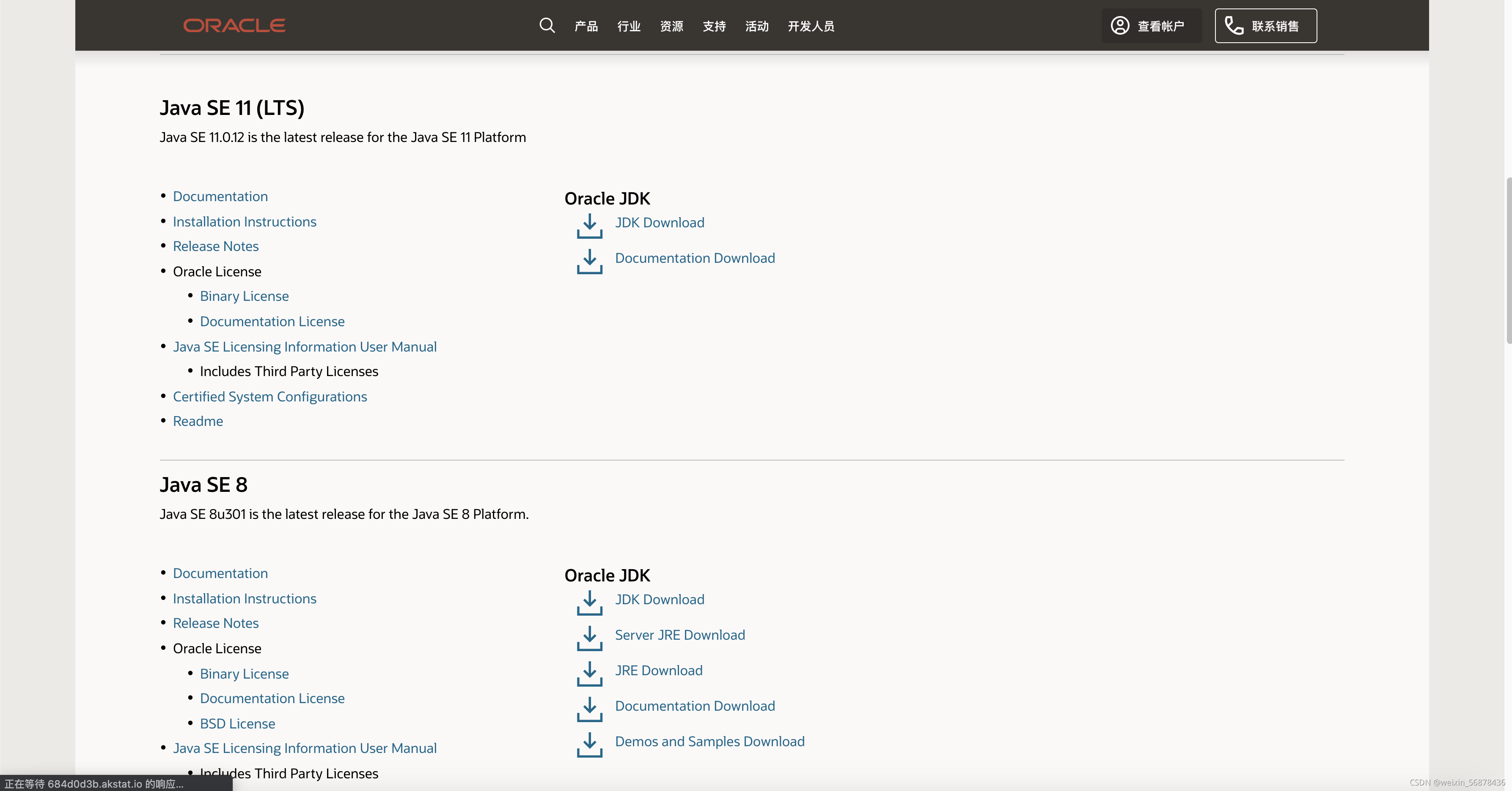 2.这里提供一个快速跳转Java下载的链接,链接可以能变,如果不能使用请到Oracle官网,从产品里找到Java,找到下载JDK。Java Downloads | Oracle 中国