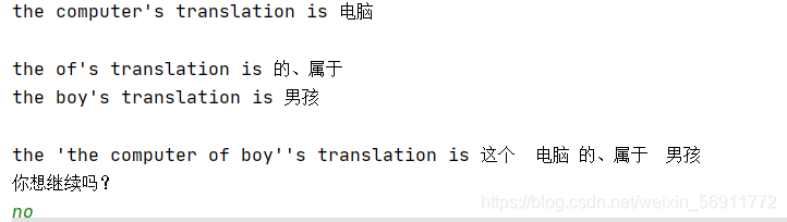 本词典可以实现查单词、查多词、可查中文也可查英文,简单来说就是英汉互译。当然,也不仅仅局限于汉英转换,对于专业为德语、俄语的小伙伴也可以进行德汉翻译等。除此之外,因本人能力有限,故本词典中每一个单词翻译的建立需要人工查阅输入,词典仅提供检索的功能。功能展示如下图: