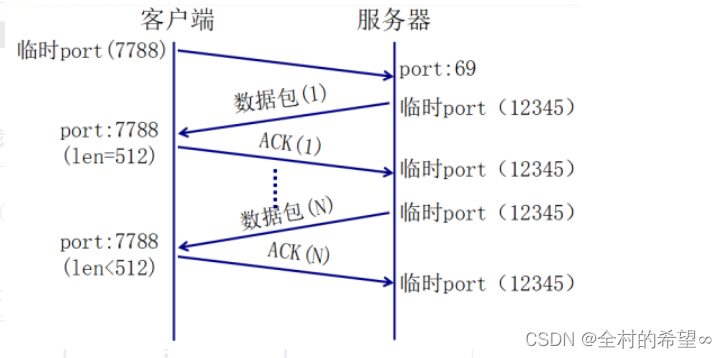 1)TFTP协议概述:简单文件传输协议适用于在网络上进行文件传输的一套标准协议,使用UDP传输