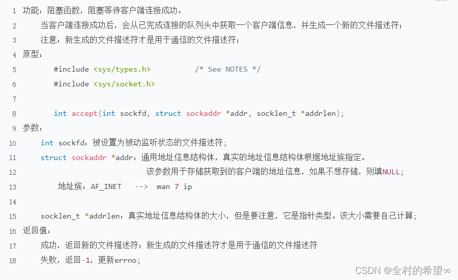 //阻塞函数,从已完成连接的队列头中获取一个客户端信息