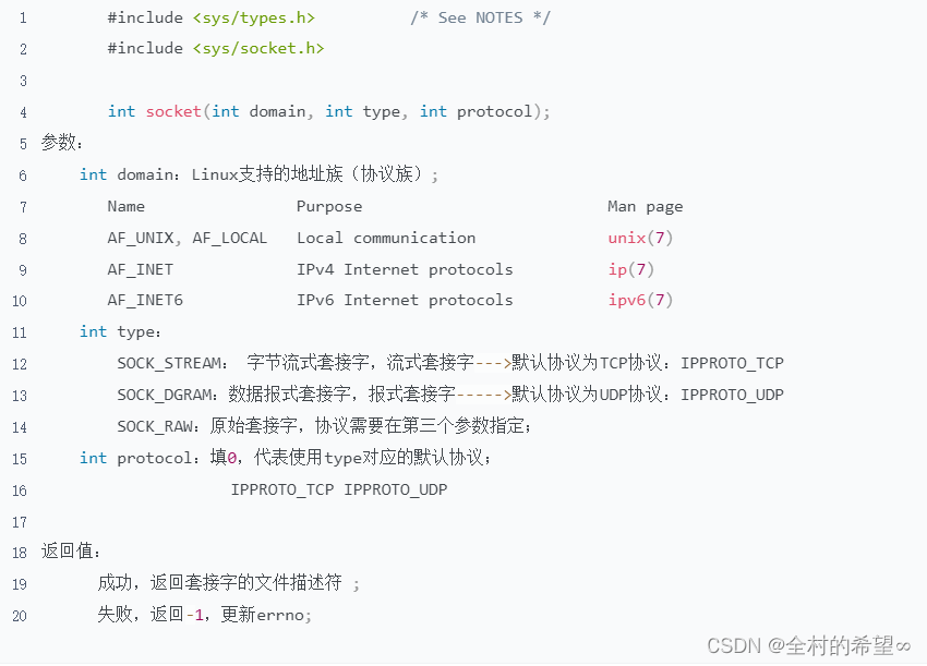 int cfd = socket(AF_INET,SOCK_STREAM,0);