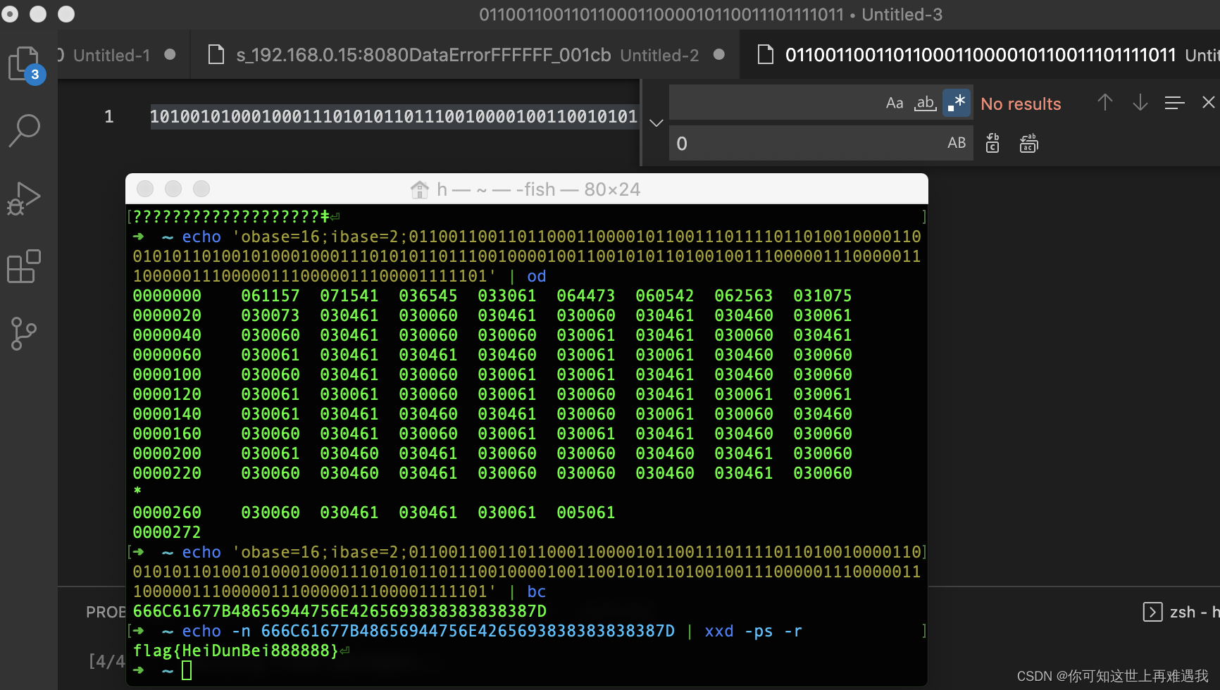 给了个txt里面都是空白字符,t 替换成 1 空格 替换成 0