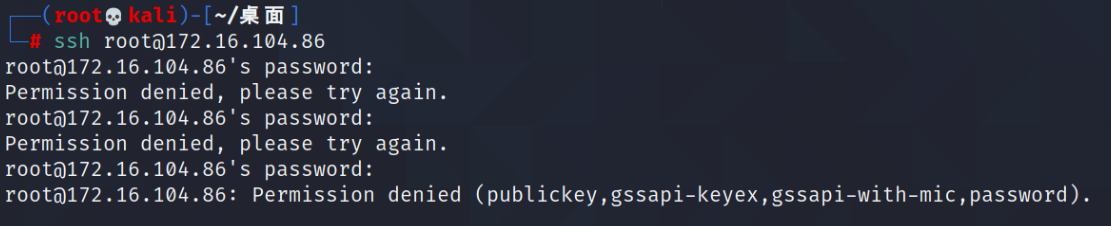 (3)漏洞加固验证过程 再次尝试远程登录,发现已经不允许登录,加固成功