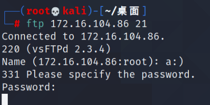 (1)漏洞发现过程或思路 通过nmap扫描发现了堡垒机开放了ftp端口,且版本为VSFTPd 2.3.4受笑脸漏洞(VSFTPd 2.3.4 Backdoor)的影响,初步判断堡垒机存在此漏洞。手动对漏洞进行验证,尝试激活后门端口,尝试对后门端口进行连接,可以成功的执行命令,证实了堡垒机存在此漏洞