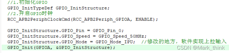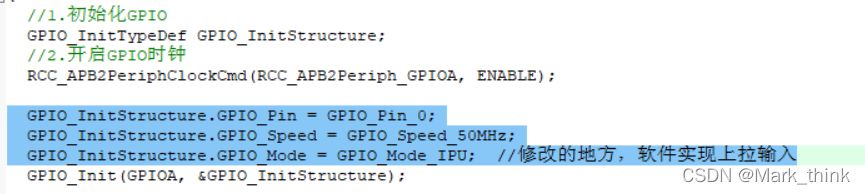 1.2声明结构体对象,对象访问成员,来配置管脚功能(参数封装的是寄存器地址)