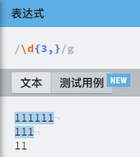 案例2: 如果只在花括号里写一位数 则代表可以匹配三个或者三个以上的数字 可以理解为3到无穷大