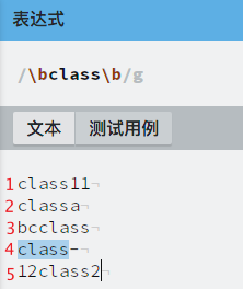 案例1: 如果正则是[\bclass] 则匹配1 2 4行
