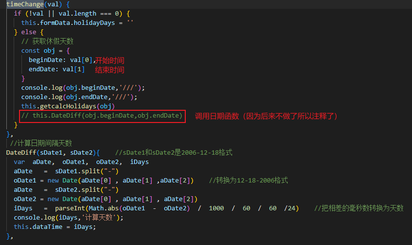 iDays = parseInt(Math.abs(oDate1 - oDate2) / 1000 / 60 / 60 /24) //把相差的毫秒数转换为天数