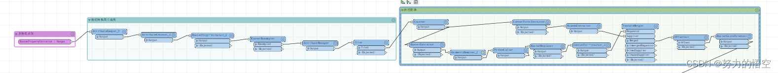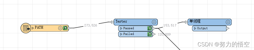 fme本身就是就是支持多线程的,意思就是只要不是阻塞类转换器,fme支持无上限个转换器并发执行。其本质就是一条数据,进入转换器中,计算完毕后马上能进入下一个转换器。这样不会造成数据在内存的积压。但是很多时候,我们需要用到不少空间分析模块,但是这部分转换器基本都是阻塞的。但是也不是没有优化空间,分组功能是FME的一大特色,可以将数据安字段组进行拆分,分别计算。通过分组,我们可以将部分需求转换为非阻塞类转换器。示例如下: