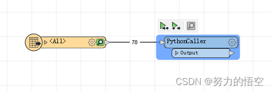 如果还不能理解的话,我们可以用一个小操作来帮助理解,比如self.pyoutput(feature),意思就是抛出要素,那么如果我们将该代码注释则会发现,转换器出口没有任何数据输出。