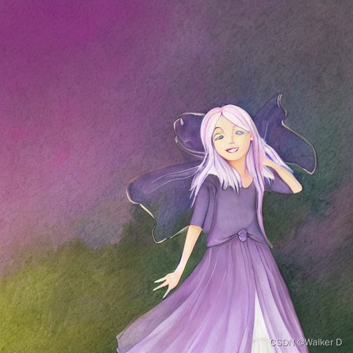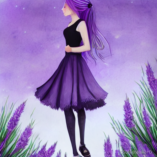 关键字:a girl with lavender hair and black skirt, fairy tale style background, a beautiful half body illustration, top lighting, perfect shadow, soft painting, reduce saturation, leaning towards watercolor