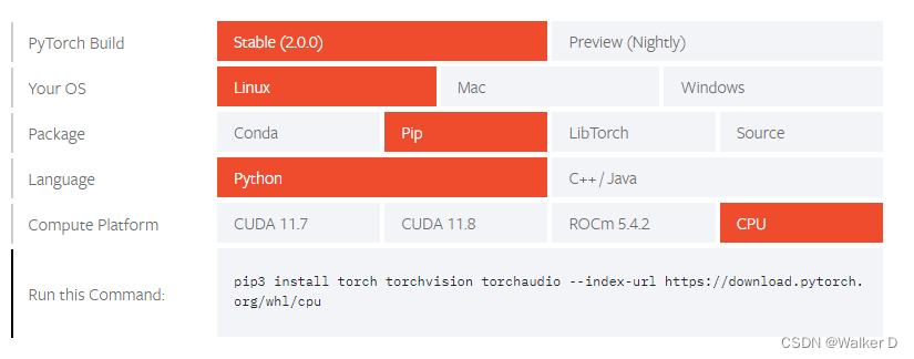10. 安装 torch,因为我的云主机是 CPU,所以必须安装 CPU 版本的:https://pytorch.org/get-started/locally/