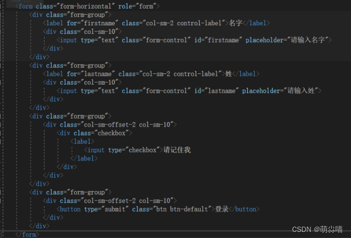 2.把标签和控件放在一个类名为form-group的div中,获得最佳间距