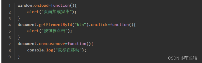 1.事件名称之间一定要加上on,比如:onclick、onload、onmousemove。