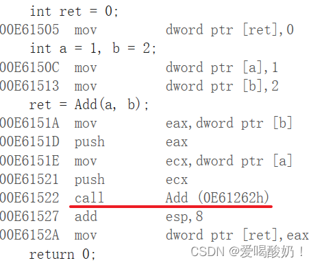 2.当VS2019处于release模式下,查看编译器生成的汇编代码中是否存在call+内联函数名这样的指令,如果存在说明没有展开。(在汇编中,call指令是函数调用的标志,如果没有call,说明函数直接展开,没有被调用)