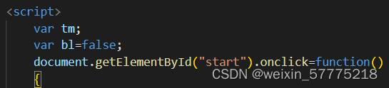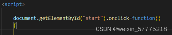 3.设置js样式;创建一个script标签在里面获取元素并绑定点击事件(document.getElementById(“id名”).onclick=function(){})如下图: