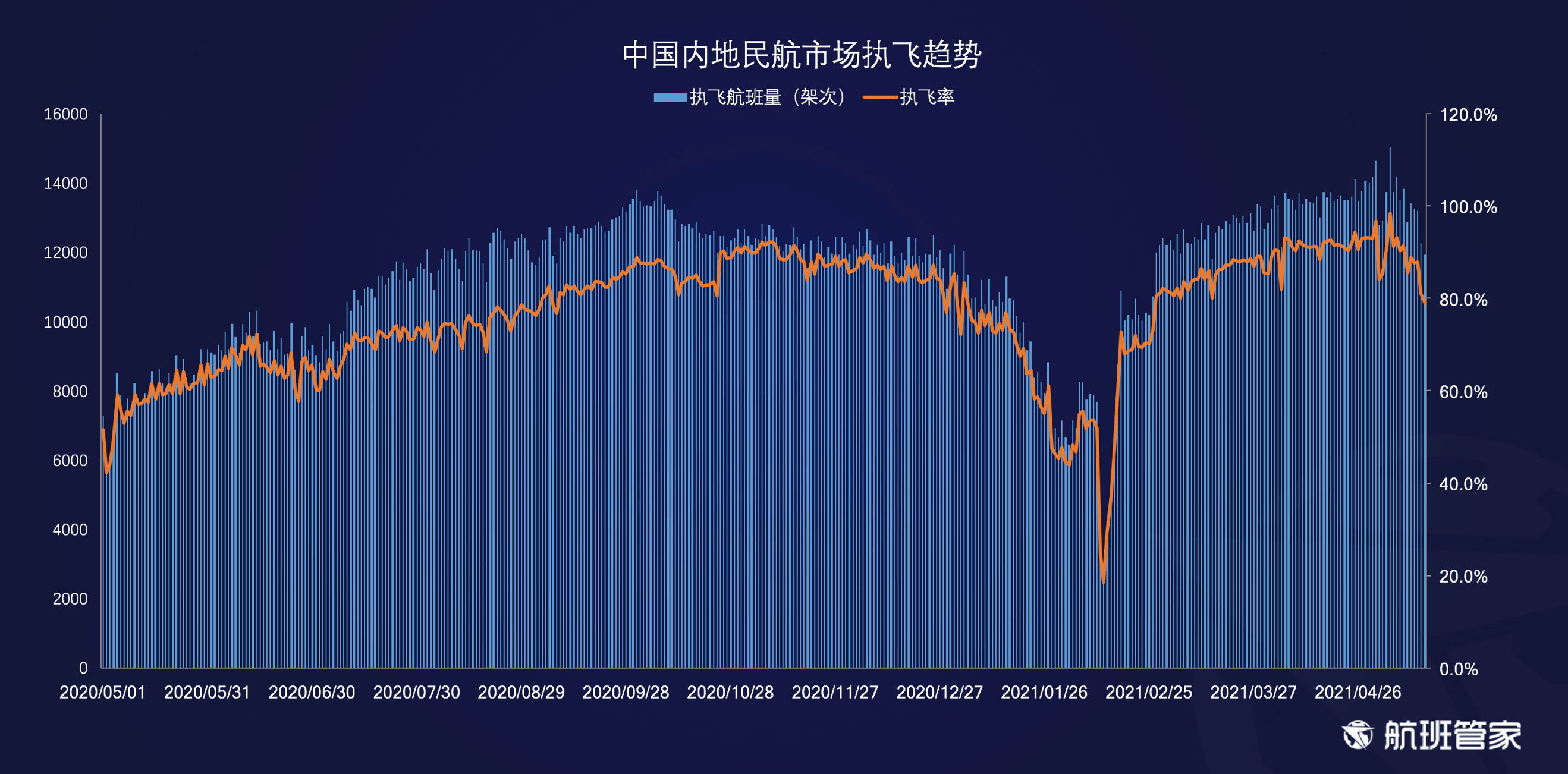 日前,航班管家发布了2021年5.10- 5.16期间的民航运行周报,从历史一周民航运行趋势、航司运行趋势、机场、货运航班等维度解读民航市场发展趋势。以下为周报内容:
