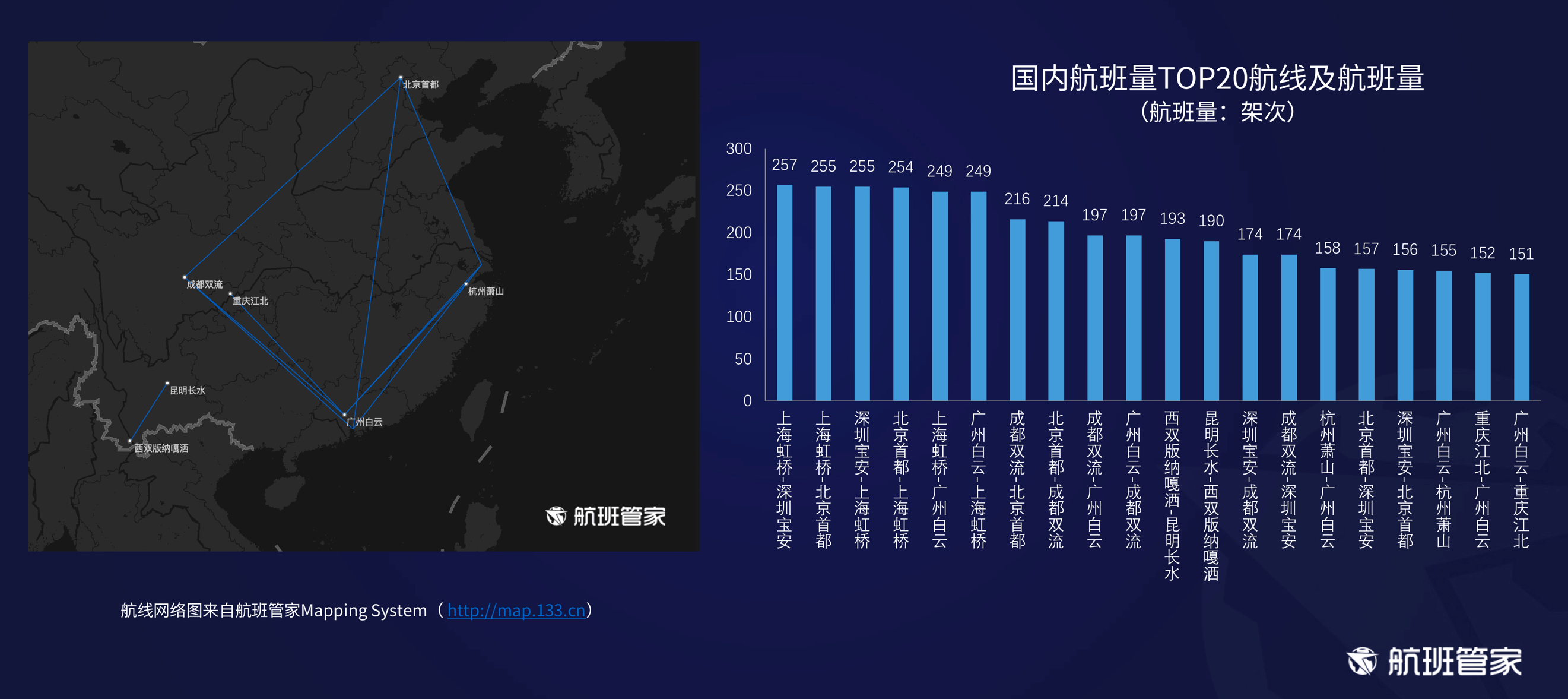 5、航班量:为实际执飞客运航班,不包括共享、经停,不包括取消航班