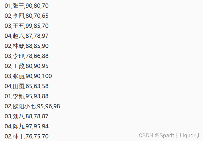 列表score中记录了学生的信息 班级,姓名,语文,数学,英语 数据如下