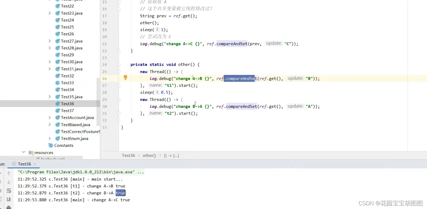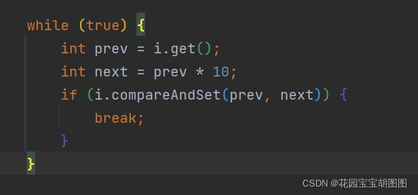 最终i1的值为50,因此其中的x就是要被操作的数 ,此处仅仅是演示 *10,完全可以做复杂的运算,如果过程中x的值被其他线程修改,就继续while-true重新来。直到修改完结果,getAndUpdate同理,即下面这段逻辑。