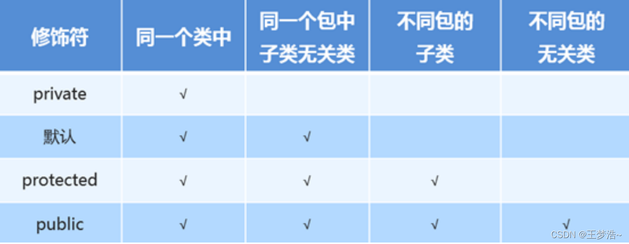- 【protected比较特殊,一般用来修饰受保护的属性和方法】